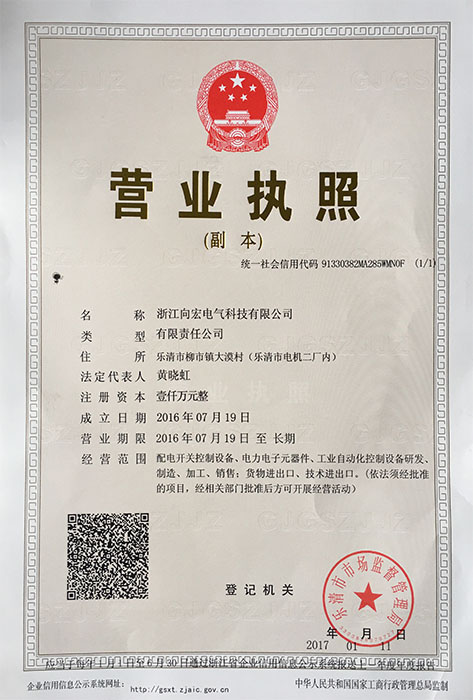 浙江向宏電氣科技有限公司創建于1993年,公司位于浙江省樂清市柳市鎮象陽工業區,是輔助開關、真空輔助開關、輔助觸頭、微動開關、磁吹開關、速動開關、行程開關、控制開關、轉換開關等100多個系列產品的專業制造商。